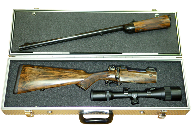 Jede Waffe wird als Einzelanfertigung, genau nach Ihren individuellen Wünschen und nach einer eingehenden Beratung gebaut. Nachfolgend sehen Sie eine Auswahl verschiedener Optionen: Kaliber Lauflänge Waffengewicht Bunthärtung Gravuren Goldeinlagen Monogramm Gold/Silberoval im Schaft Viertelschiene Mündungsbremse |