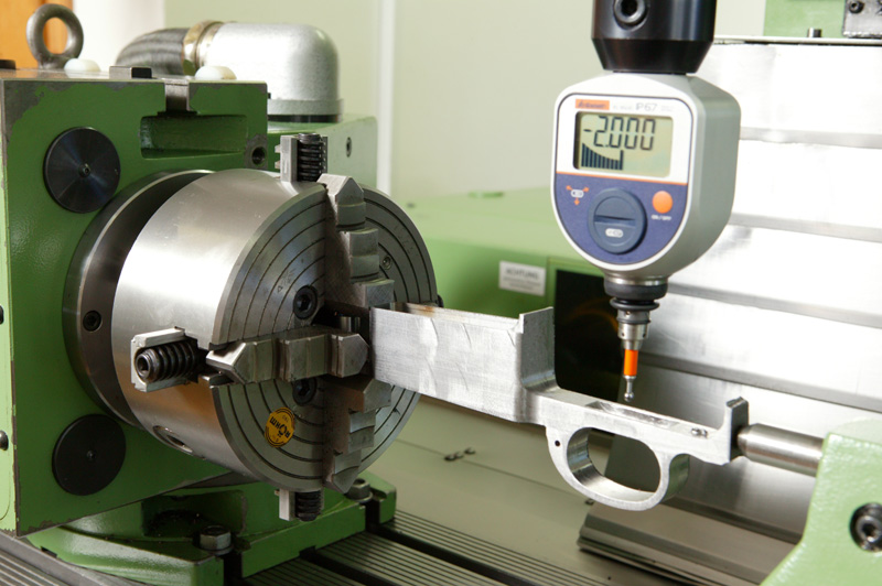 Fast alle einzelnen Arbeitsschritte, die zur Herstellung einer hochwertigen Jagdwaffe notwendig sind, werden im eigenen Betrieb ausgeführt. Dies reicht von der Planung, Herstellung von Zeichnungen mittels CAD System bis zum Fräsen auf der eigenen CNC Fräsmaschine. Der Schaft wird anhand eines Modells kopiergefräst und in Handarbeit fertiggestellt. Auch viele Komponenten von Jagdwaffen, die üblicherweise zugekauft werden, fertige ich selber an. Dies reicht von Abzügen aus rostfreien Stahl, Montageteilen, Visierteilen, bis zu Griffkappen aus Stahl. |